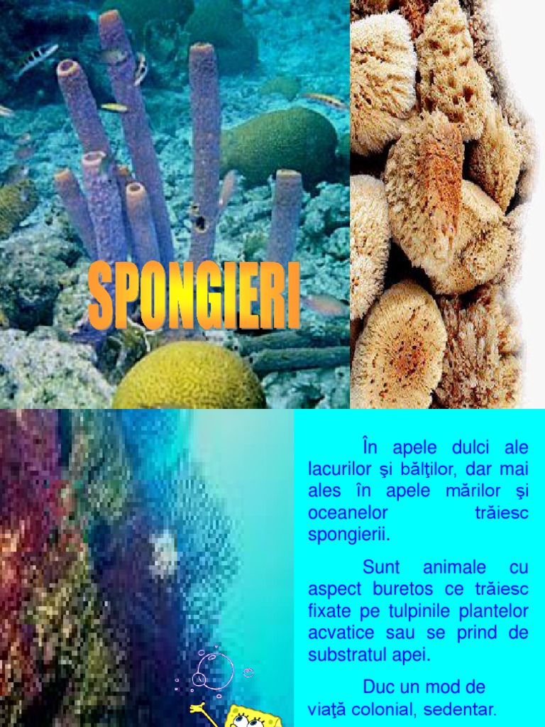 Spongierii sunt un grup de animale nevertebrate aparținând încrengăturii porifera acestea sunt primele animale aparute pe pământ tot odata si cele mai simple.