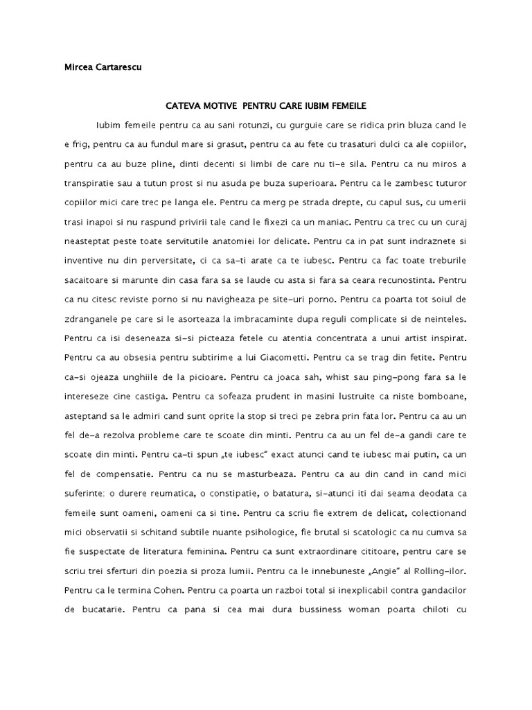 Eşti ce este ce se vede nici un strop mai mult. De ce iubim femeile. Am terminat de curând cartea de ce iubim femeile de mircea cărtărescu și am ales să nu public o recenzie ci mai multe citate care mie mi s au părut drăguțe. Fata nu era frumoasă ci era imaginea sensibilă a.