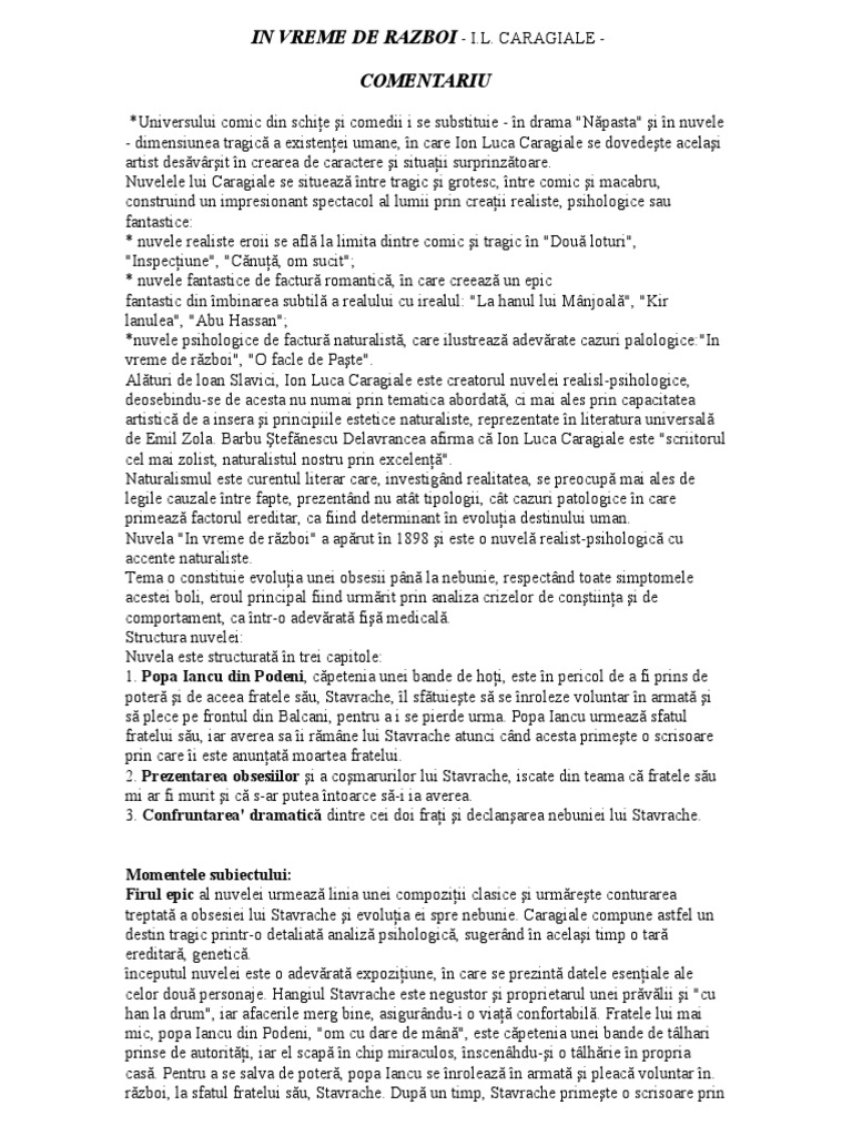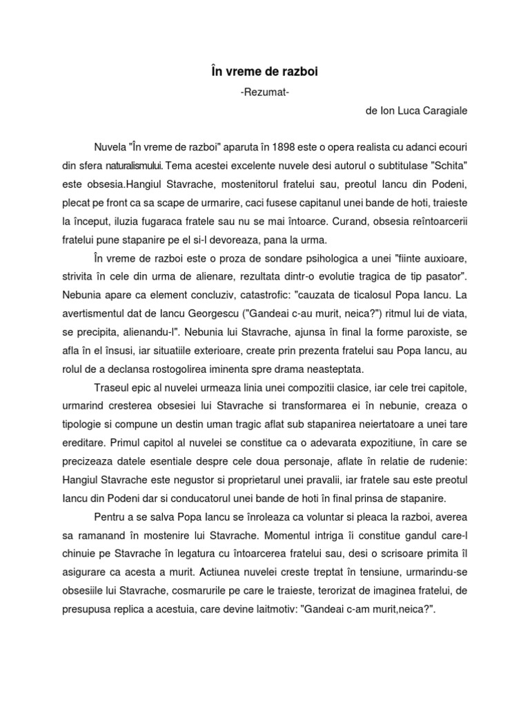 Trecuse multă vreme de când popa iancu dispăruse nu se știe cum. Nuvela este specia genului epic in proza cu un singur fir. In vreme de ra zboi comentariu literar momentele subiectului. Nuvela psihologica în vreme de război de ion luca caragiale nuvelă psihologică de factură naturalistă alături de ioan slavici ion luca caragiale este creatorul nuvelei realist psihologice nuvela în vreme de război de ion luca caragiale 1852 1912 a apărut în 1898 şi este o creaţie realist psihologică având şi puternice accente naturaliste.
