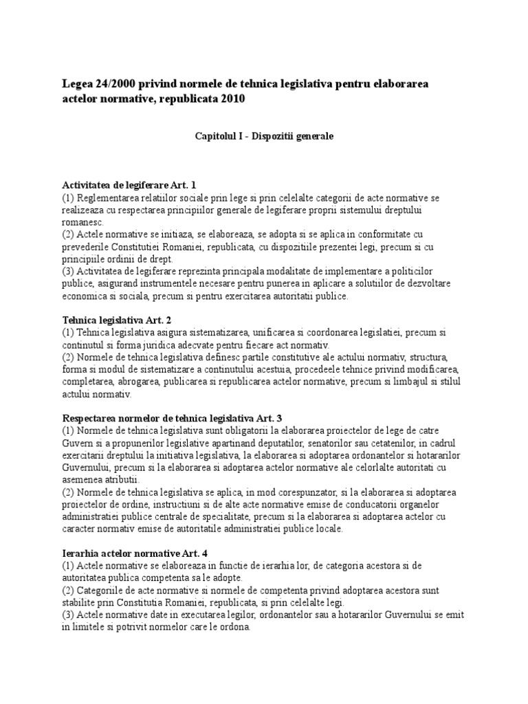 Legea 24 2000. 24 2000 a fost publicata in monitorul oficial al romaniei partea i nr. 24 2000 privind normele de tehnică legislativă pentru elaborarea actelor normative a fost republicată în monitorul oficial al româniei partea i nr. 24 2000 privind normele de tehnică legislativă pentru elaborarea actelor normative publicată în monitorul oficial al româniei partea i nr. 24 2000 privind normele de tehnică legislativă pentru elaborarea actelor normative a fost republicată în monitorul oficial al româniei partea i nr.