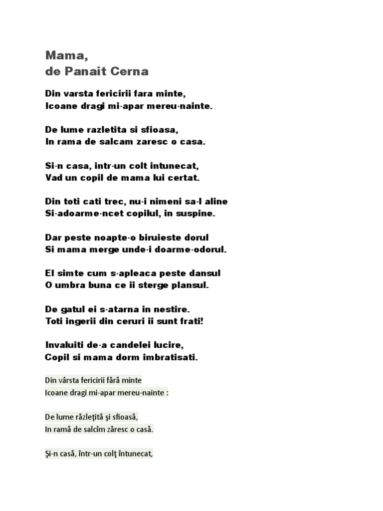 El mâinile și ntinde spre iertare dar ea i tăcută și nendurătoare. Roversuri ro litera p panait cerna poezia mama de panait cerna poezia mama i din varsta fericirii fara minte icoane dragi mi apar mereu nainteâ. Mama de panait cerna. și n casă într un colț întunecat văd un copil de mama lui certat.