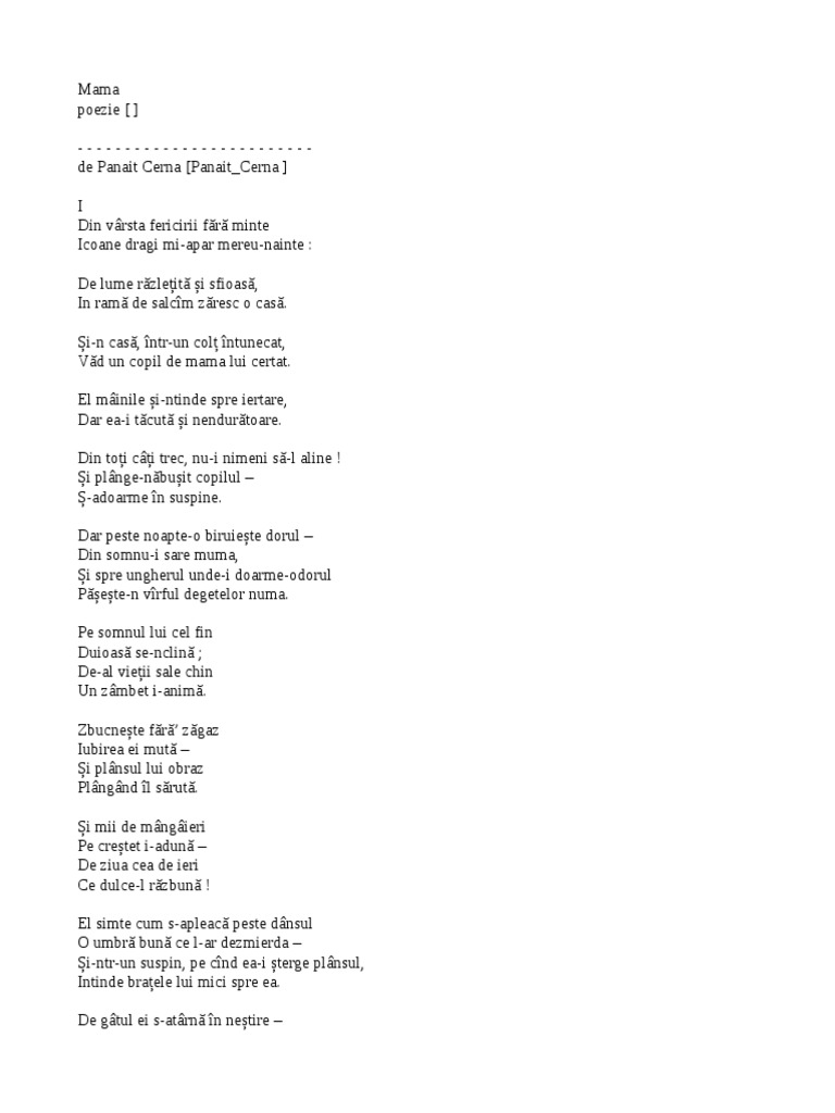 Panait cerna pe numele său de naștere stanciof de origine bulgară n. Panait cerna mama i din vârsta fericirii fără minte icoane dragi mi apar mereu nainte. 25 septembrie 1881 cerna județul tulcea d. De lume răzleţită şi sfioasă in ramă de salcîm zăresc o casă.