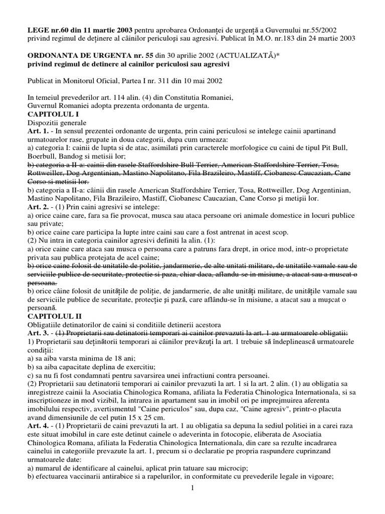 Oug 55 2002 privind regimul de deținere al câinilor periculoși sau agresivi republicată în 2014. 311 din 10 mai 2002 guvernul româniei o rdonanţă de urgenţă privind regimul de deţinere al câinilor periculoşi sau agresivi în temeiul prevederilor art. Ordonanţă de urgenţă nr. Ordonanta de urgenta nr.